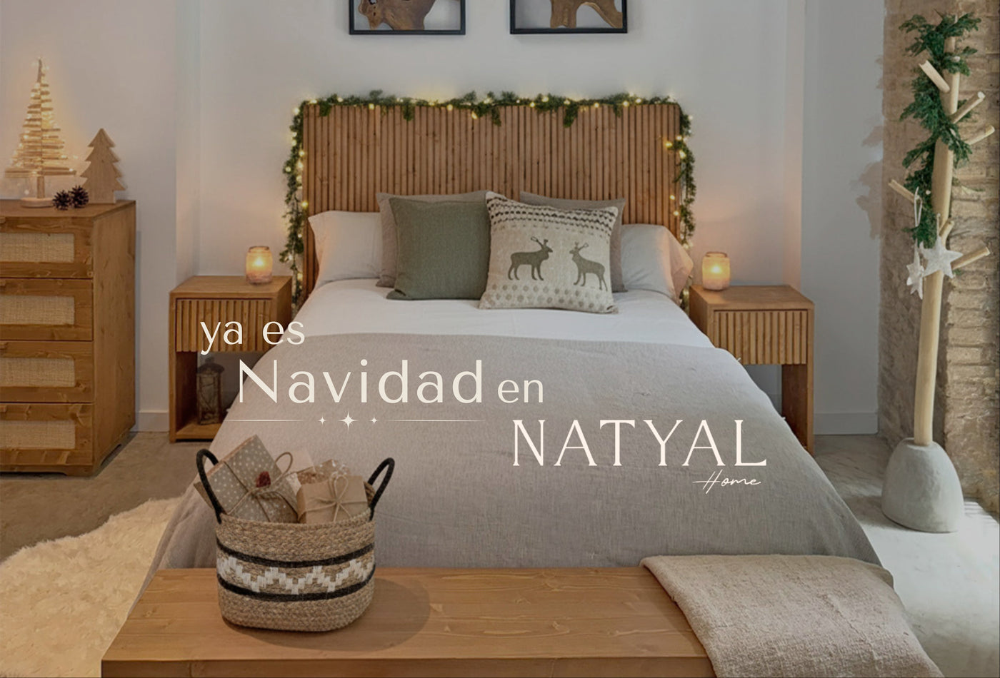 ¡Sí! ¡Es posible! Elige el color de la madera y la fibra natural que más te guste para tu cabecero y mesitas de noche.