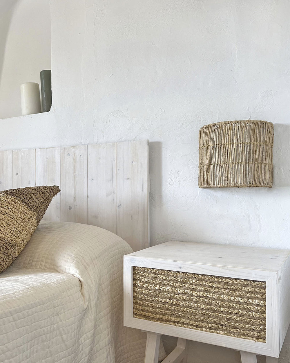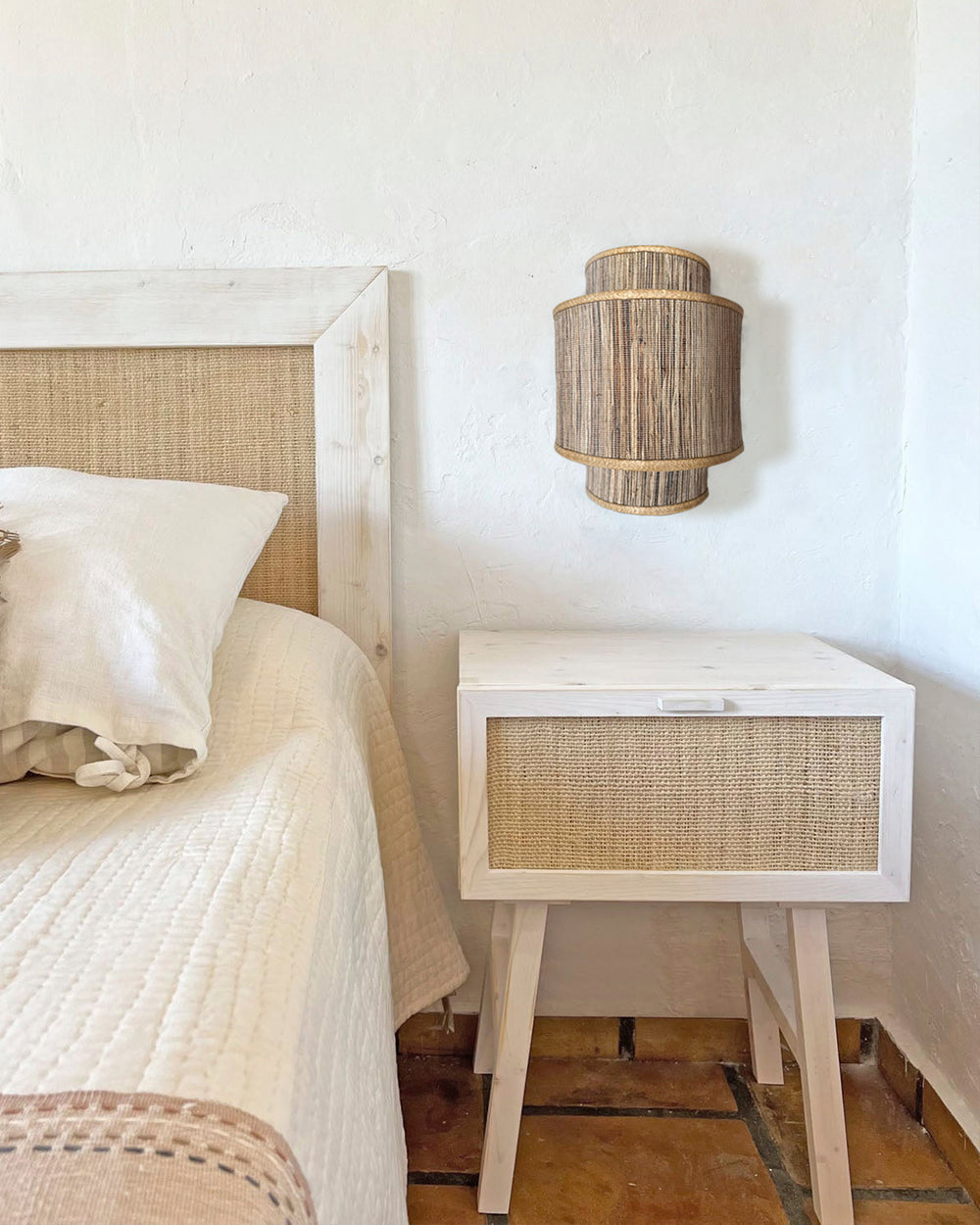 Mueble aparador con de madera maciza con puertas de rafia natural (2 tamaños)