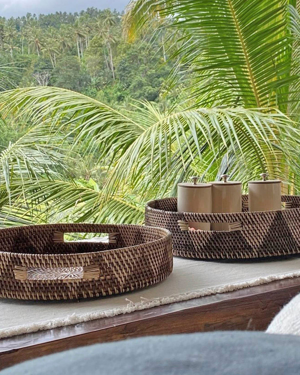 Los manteles individuales o bajoplatos junto a las bandejas decorativas están hechos a mano por artesanos en Bali con fibras naturales como el ratán o la rafia natural . Bandejas y manteles muy prácticos y decorativos al servir, al mismo tiempo, como mantel y decoración de mesa de una forma muy elegante que está muy de moda en decoración de interiores. Además, los manteles son muy resistentes y tienen el toque natural que tanto nos encanta.