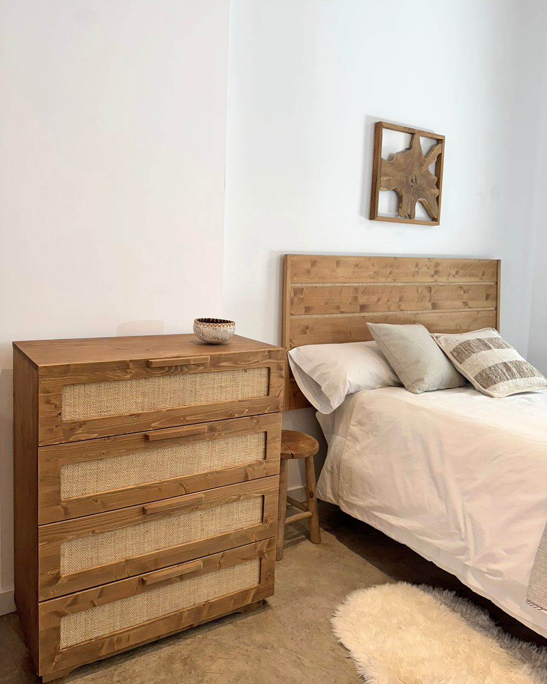 Nuestras cómodas se adaptan a diferentes estilos decorativos: natural, mediterráneo, minimalista, rústico, boho. Son piezas versátiles que sirven tanto para el dormitorio principal como para habitaciones auxiliares, aportando almacenaje sin renunciar al diseño.