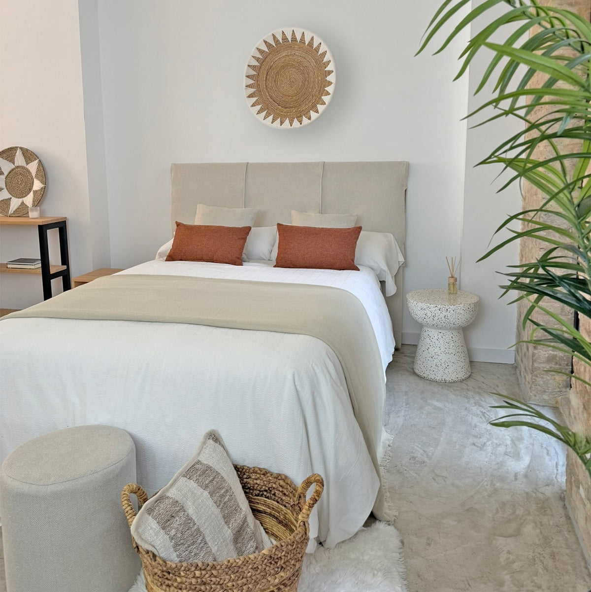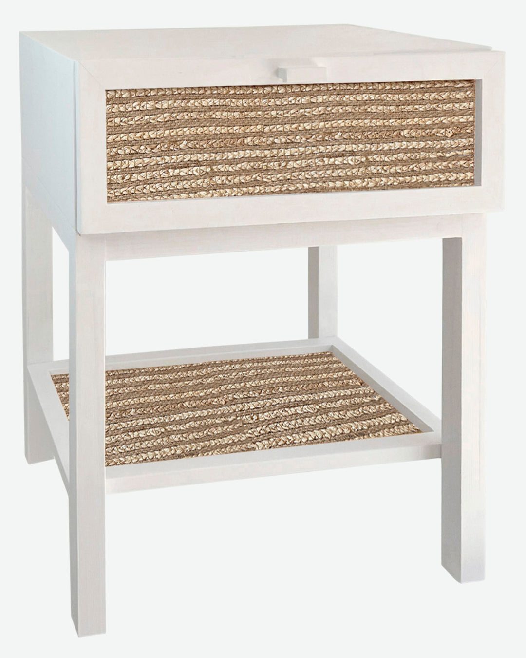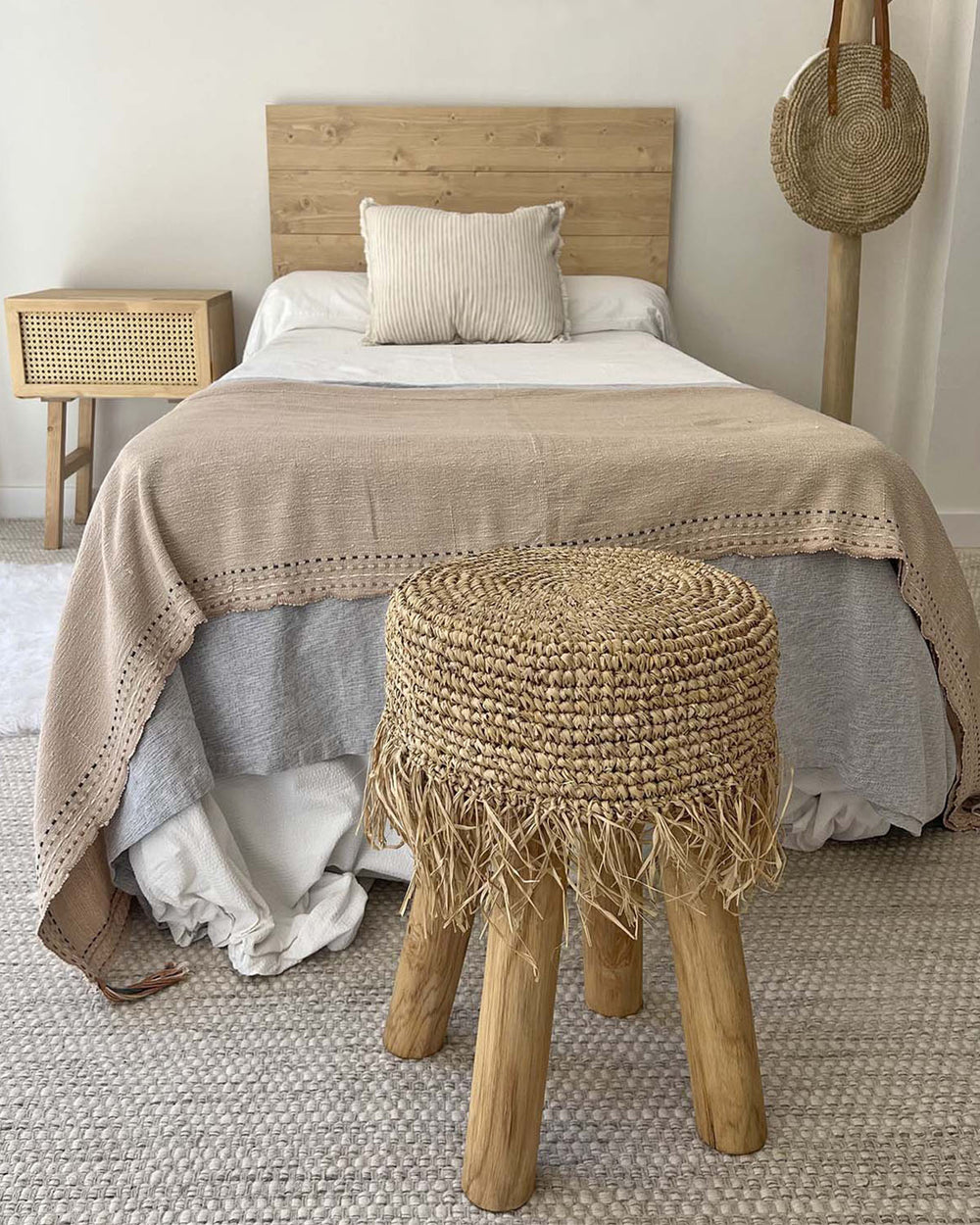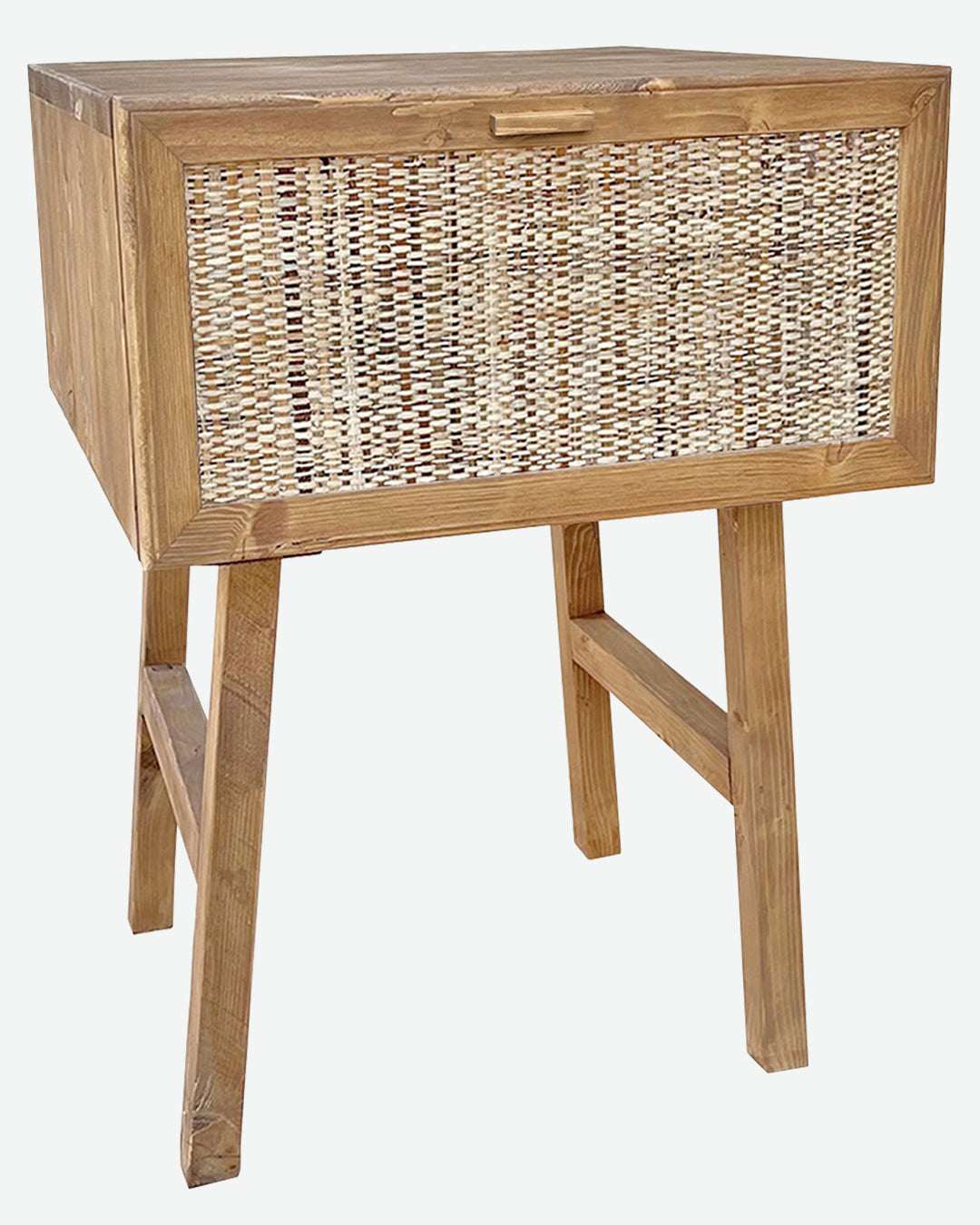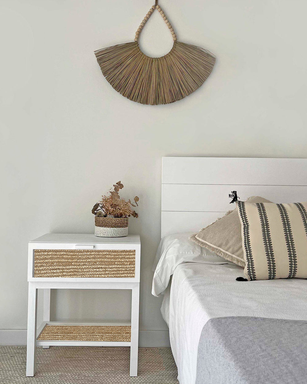 Mesita de noche de madera con rafia natural (varios colores disponibles)