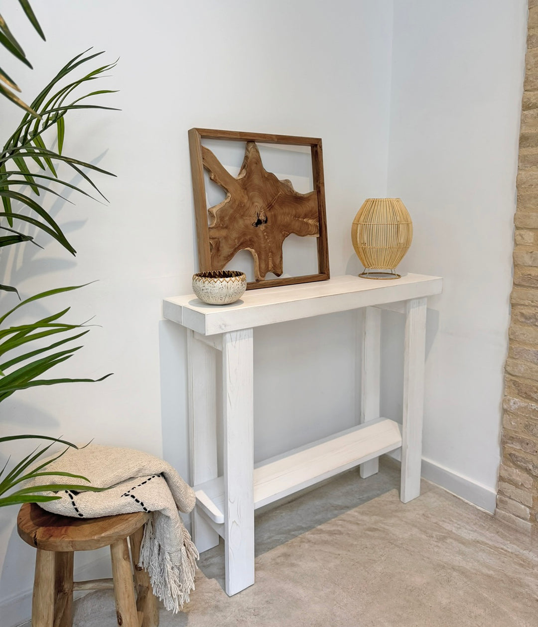 Mesa de recibidor de madera maciza con balda (2 tamaños disponibles: 90cm y 110cm)