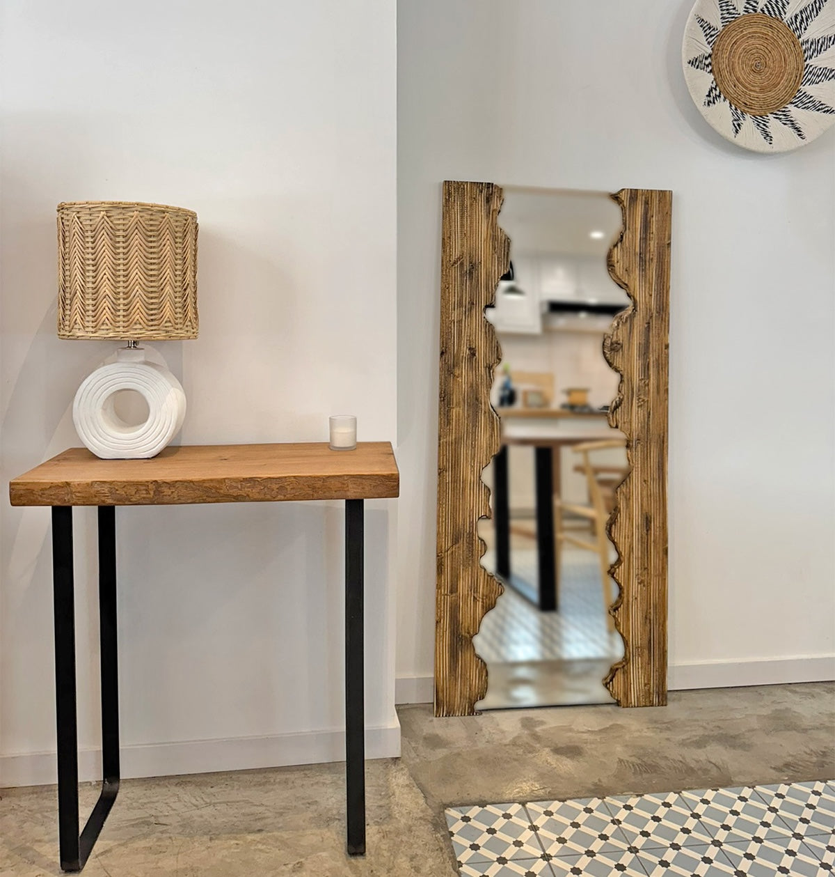 Mesa de recibidor de madera maciza con patas de hierro (4 tamaños disponibles)