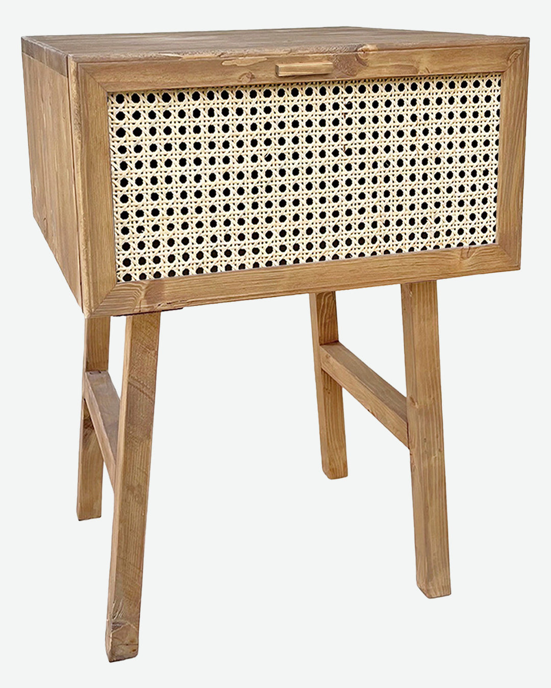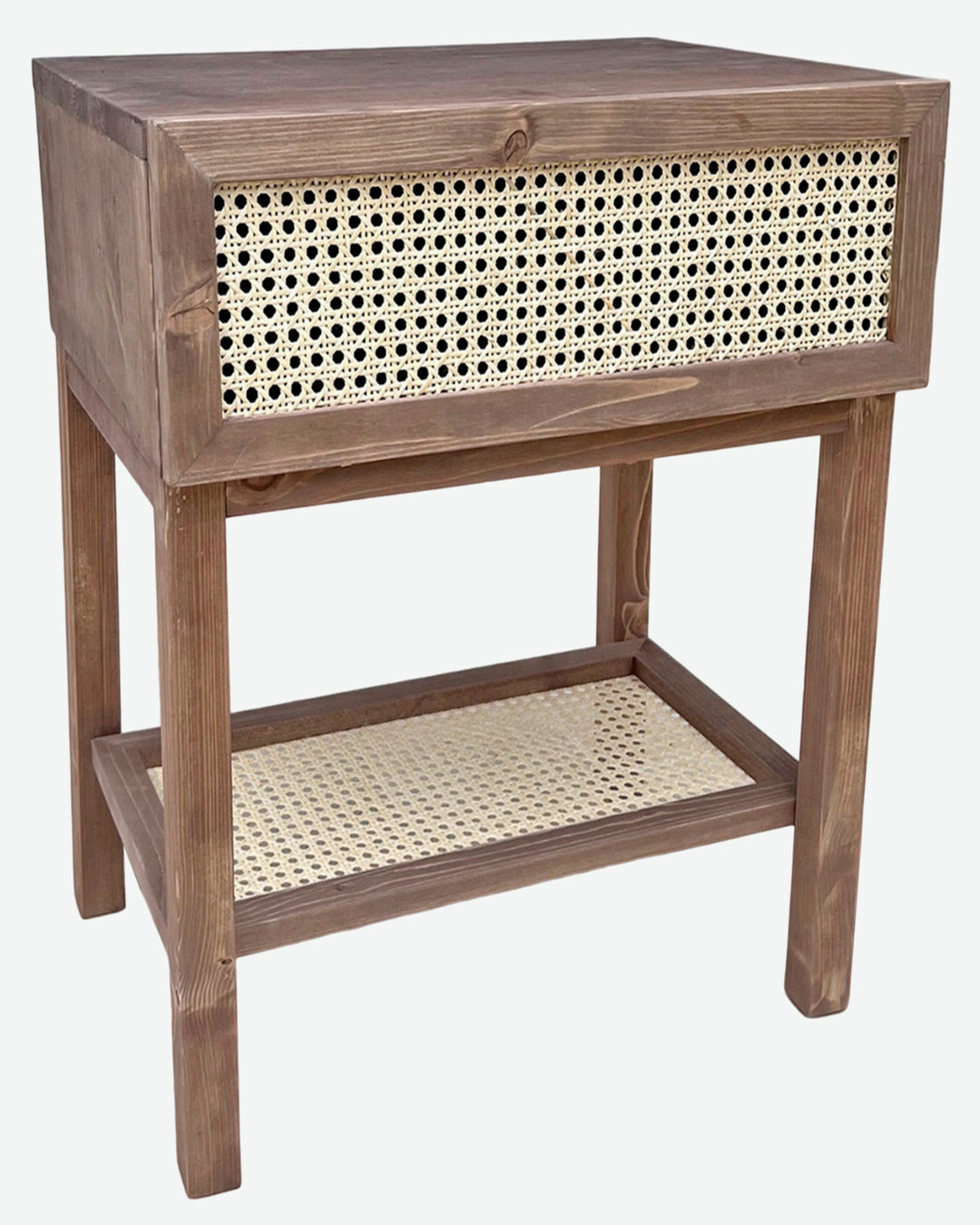 Mesita de noche de madera con rafia marrón (varios colores disponibles)