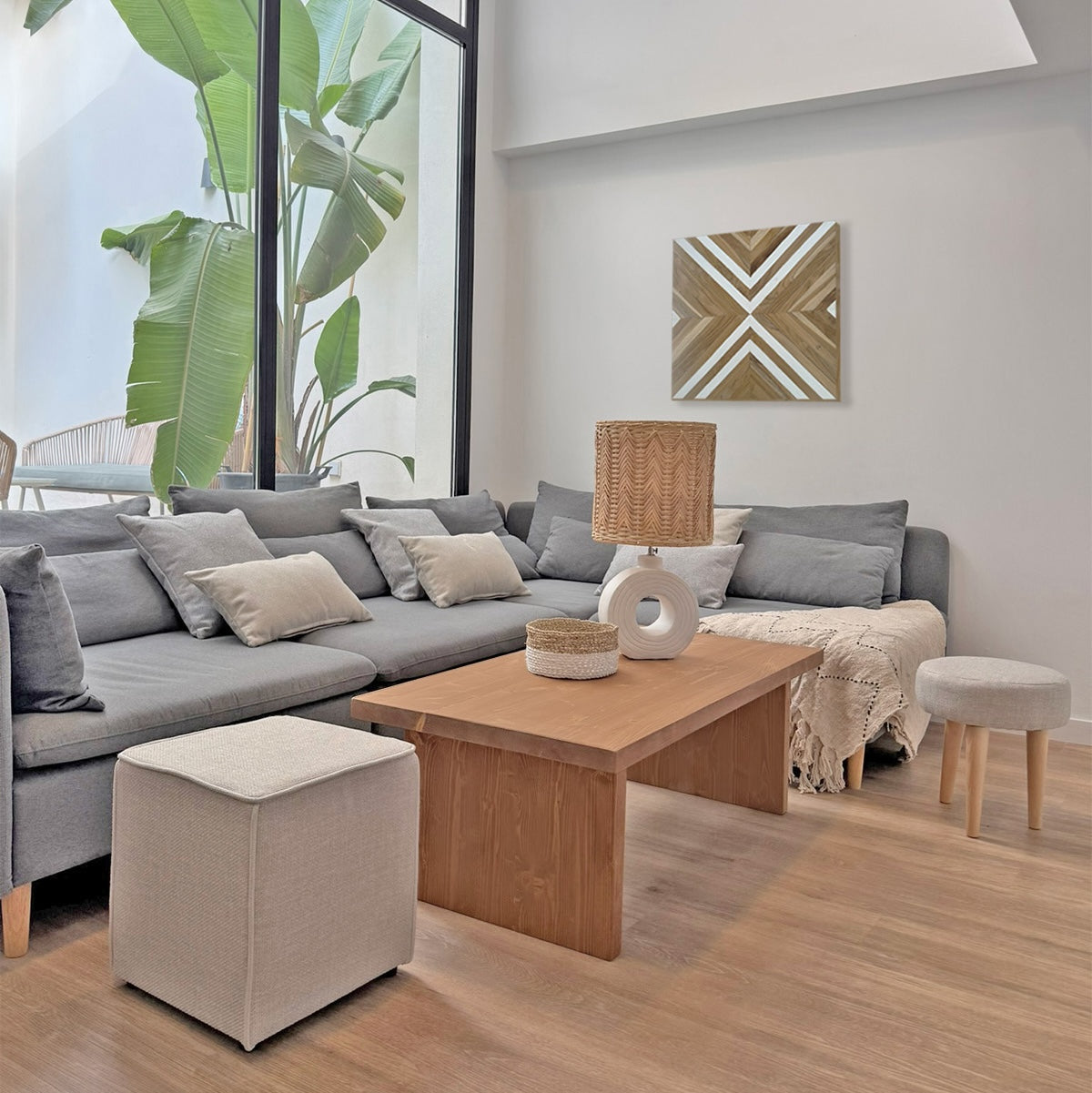 Cuadro de madera de teca y detalles en blanco (60x60cm)