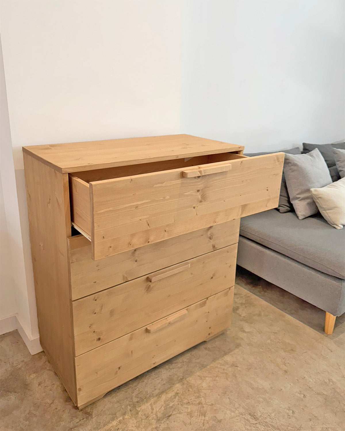 Añade calidez, estilo y funcionalidad a tu dormitorio con nuestra cómoda Garos de madera maciza que cuenta con cuatro cajones con guías. Su diseño de líneas limpias y acabado natural, convierte esta pieza de mobiliario en un imprescindible para la organización y decoración de tu dormitorio. Sin duda, una solución de almacenamiento muy práctica con el mejor diseño y calidad.