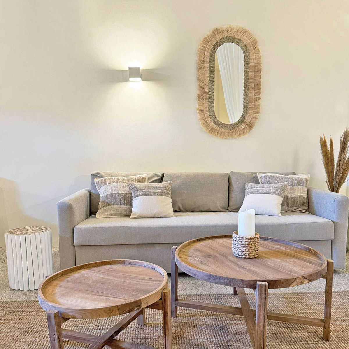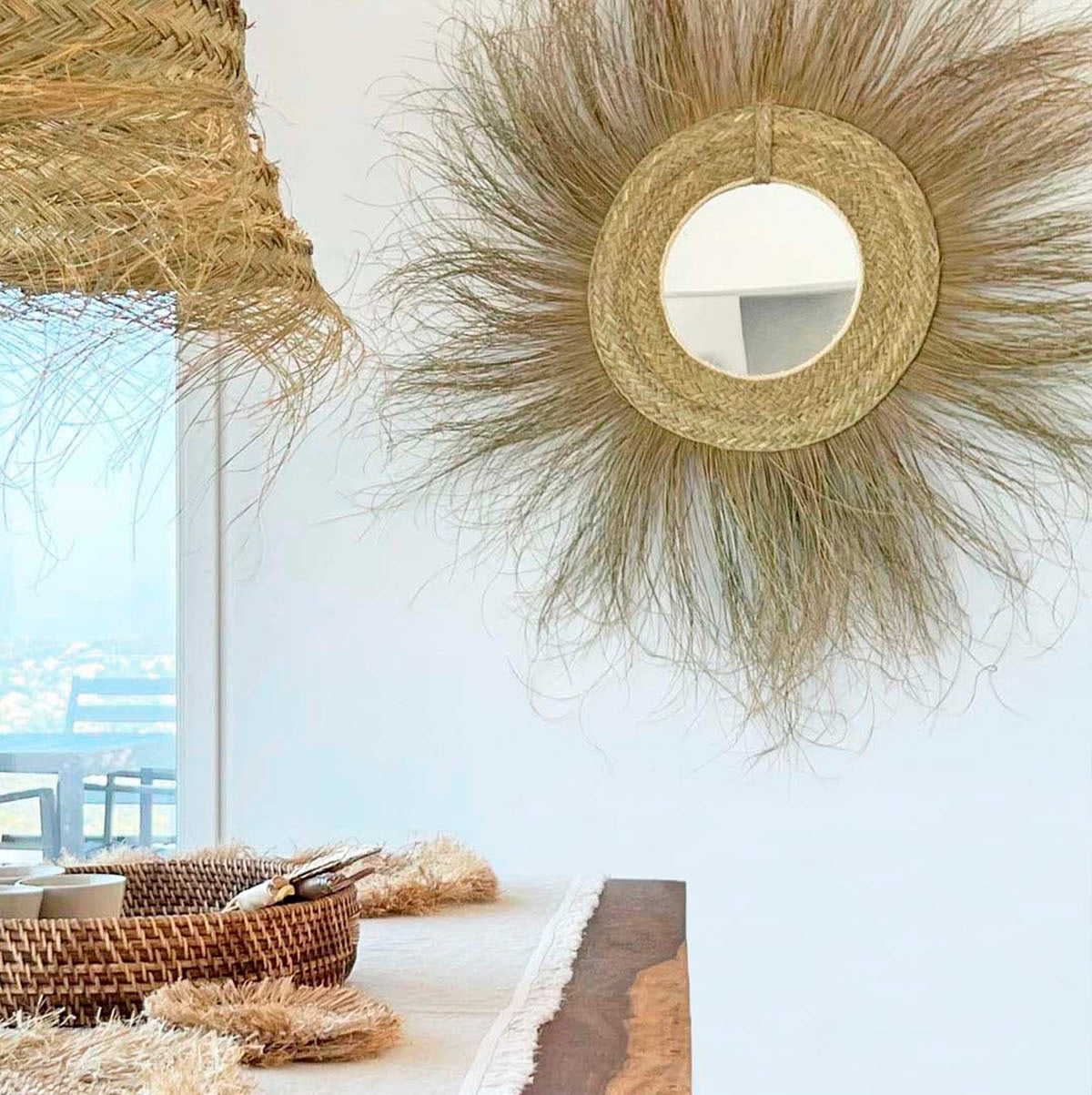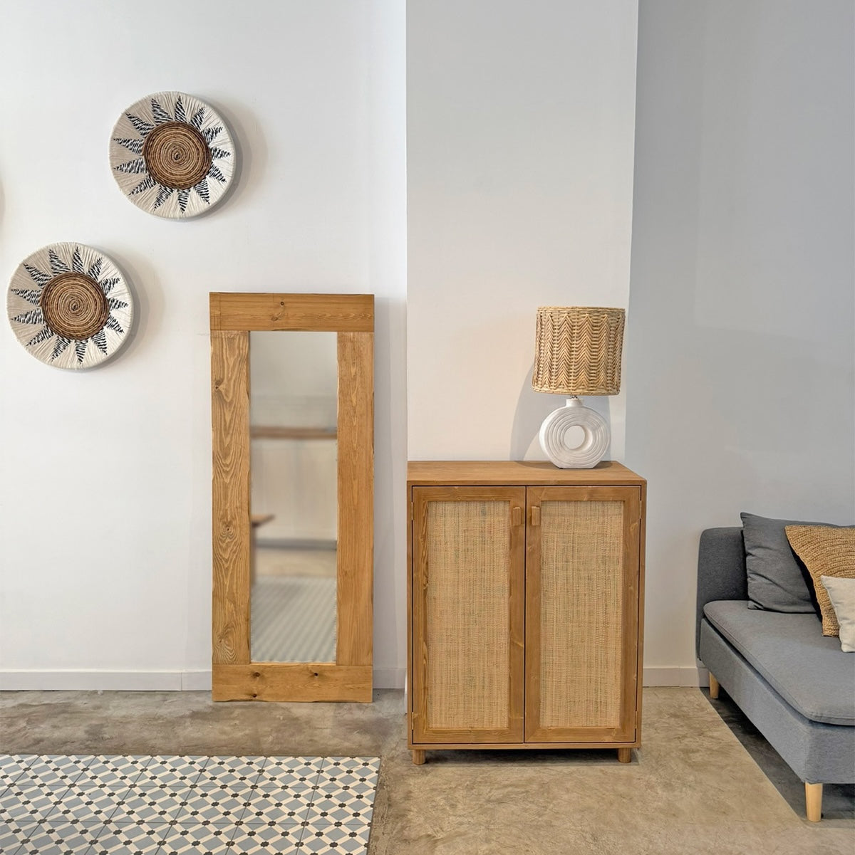 At Natyal, you'll find a wide selection of decorative wall and floor mirrors to give your home a new look. These mirrors are handcrafted with high-quality wood and natural fibers such as raffia, rattan, esparto grass, and cotton . Our wooden mirrors can be customized , allowing you to choose the wood color and size. Our modern mirrors adapt to any style , whether Nordic, rustic, or Mediterranean.
