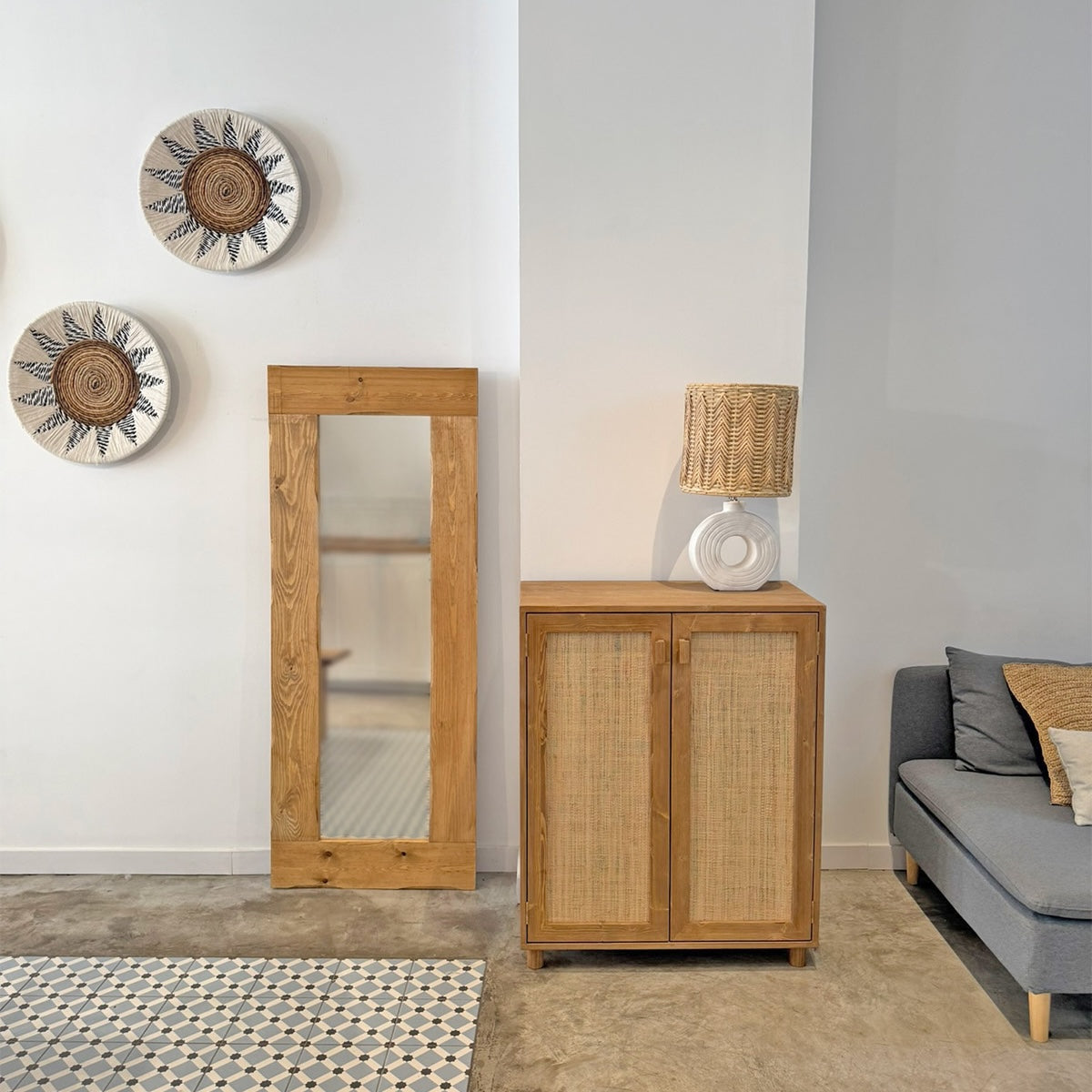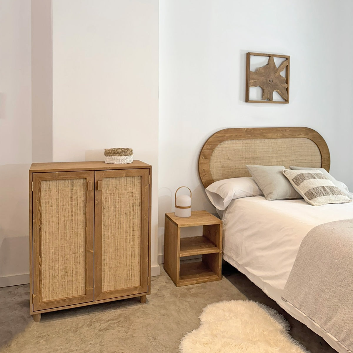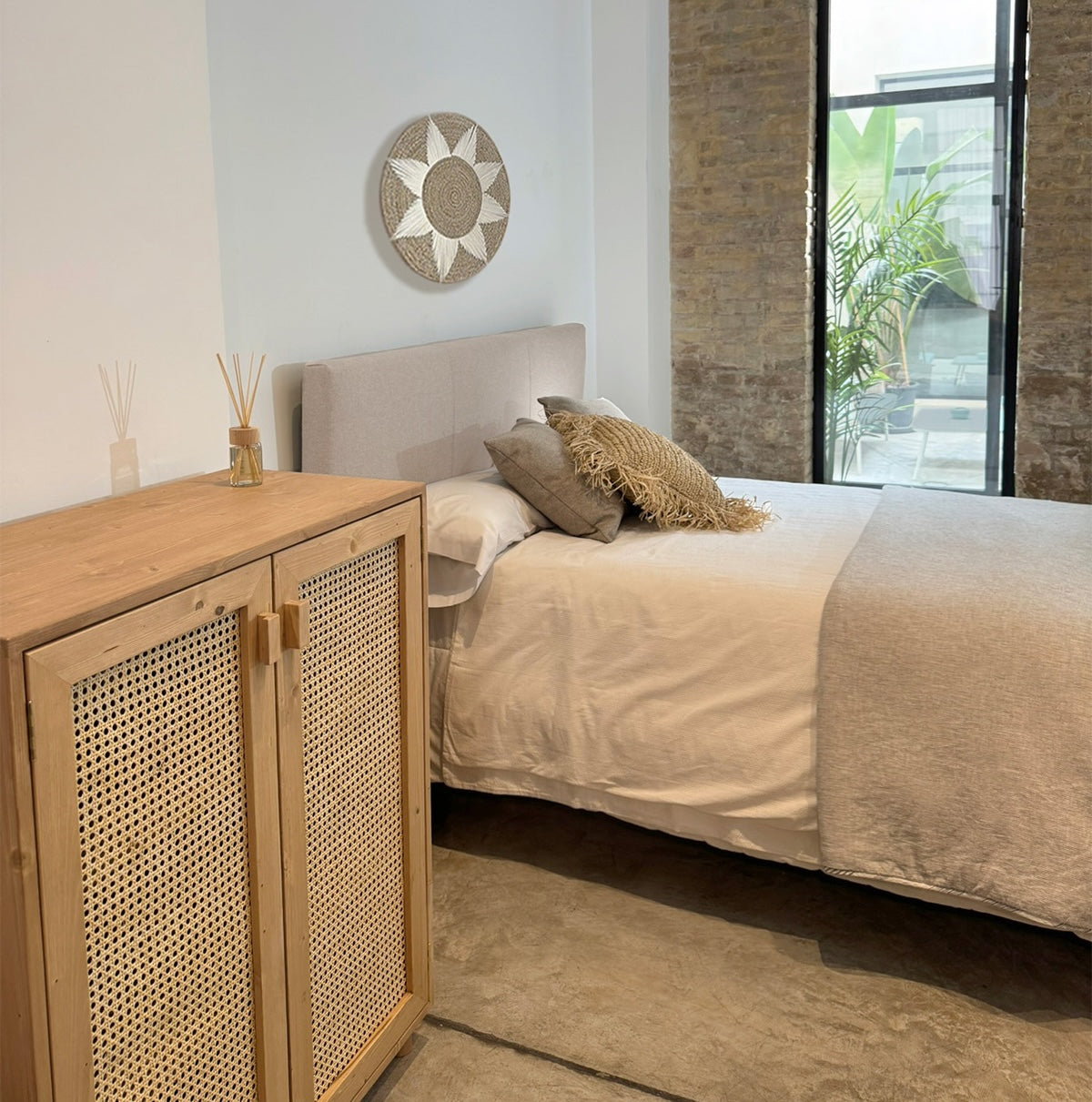 Elegante y funcional, así es nuestro aparador de madera con puertas de ratán natural. Un diseño moderno y único que está muy de moda y que llega directo a conquistar vuestros hogares.