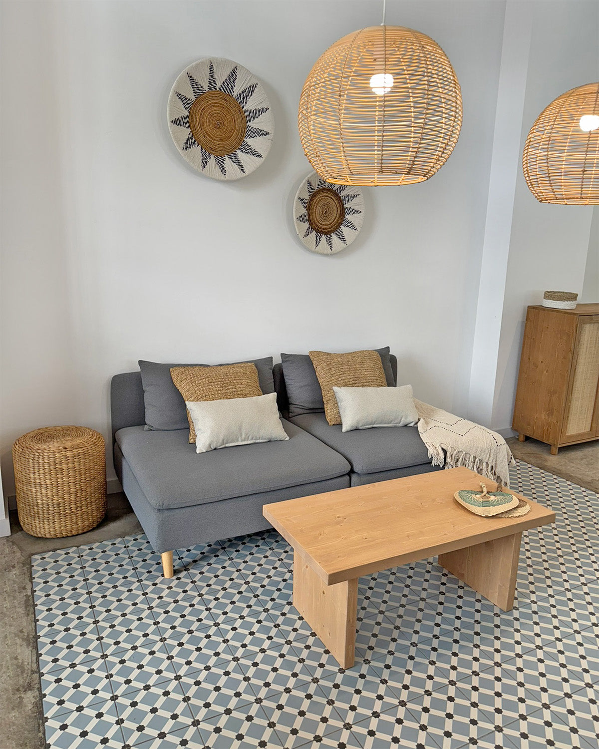 It integrates easily with other decorative elements, adapting to different styles such as rustic, Mediterranean, Nordic, or boho, achieving a harmonious balance in different rooms. You can place it in your living room as extra seating, next to the sofa or your favorite armchair as a footstool, or even in the bedroom as a footstool.