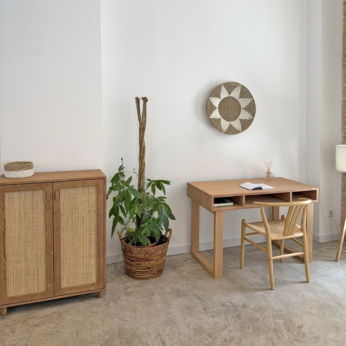 Solid wood sideboard with natural raffia doors (2 sizes)