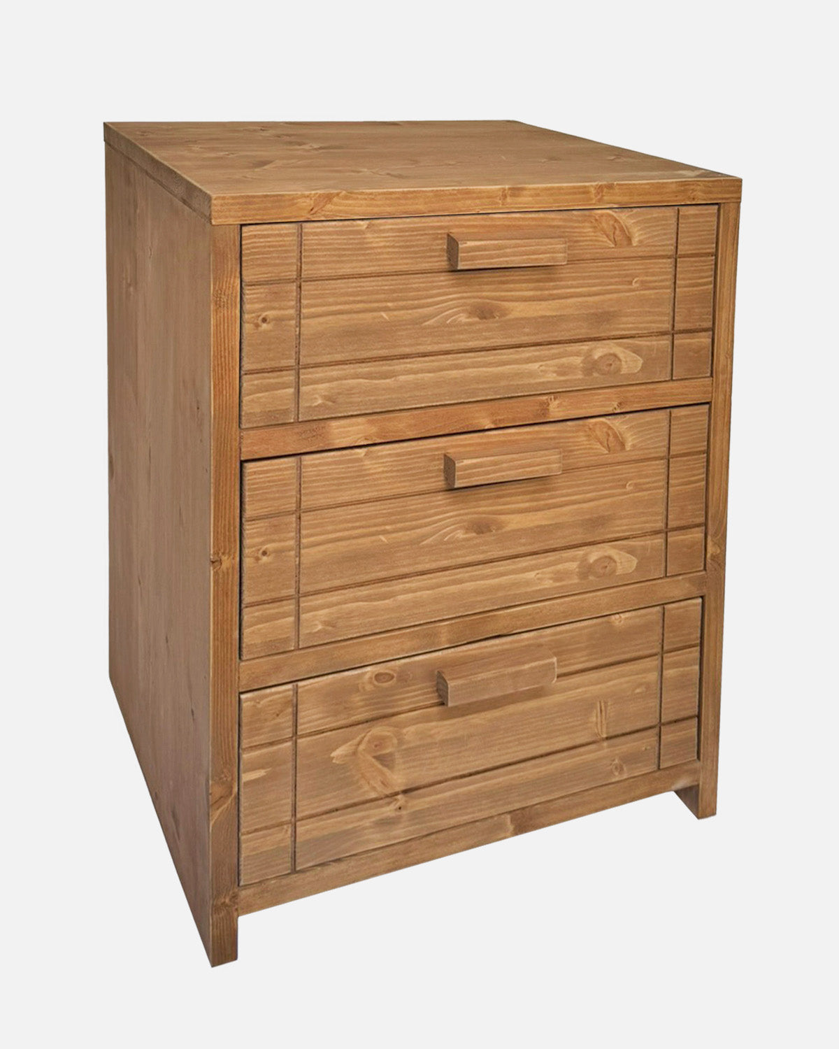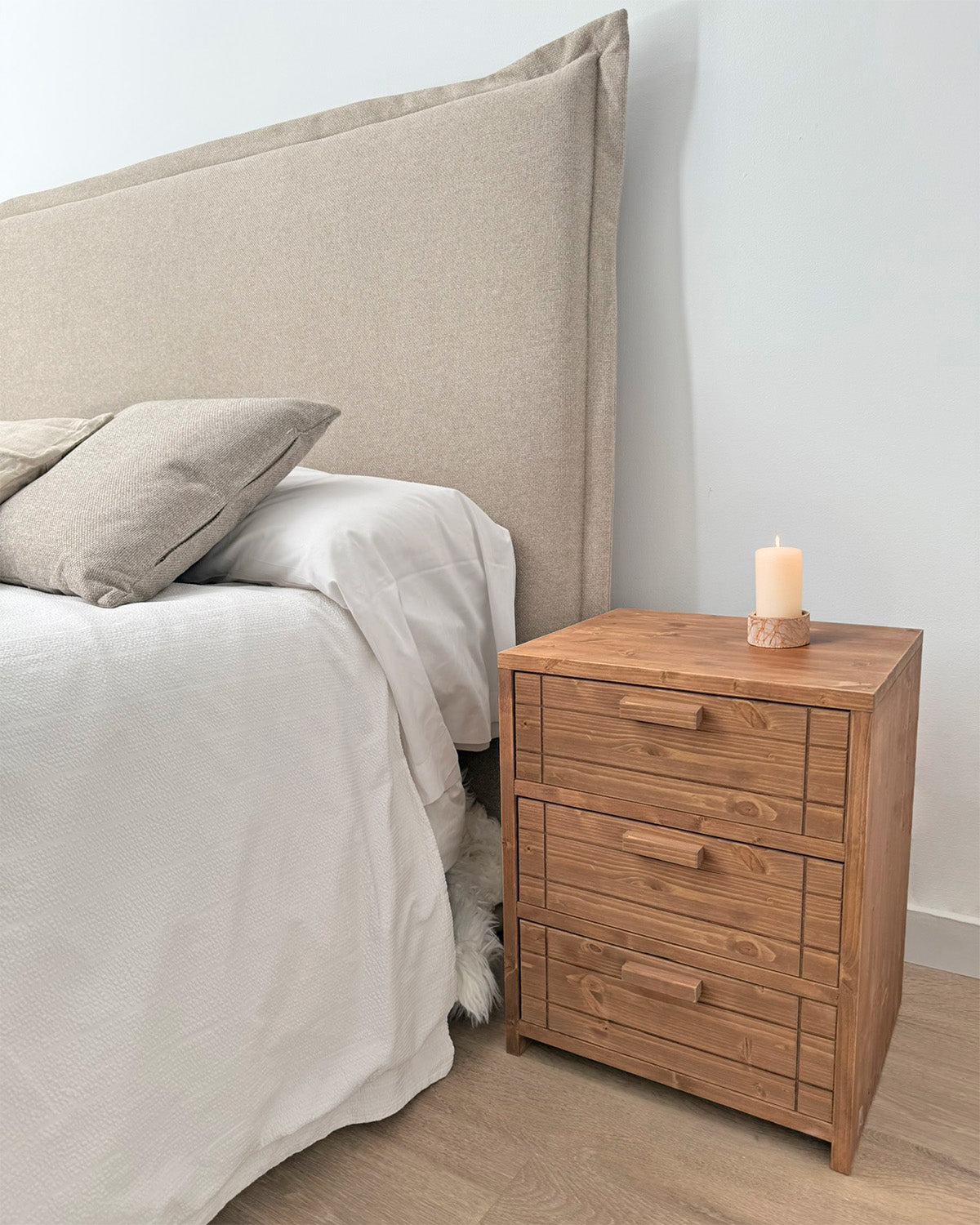 Este mueble de dormitorio no solo es un elemento decorativo para tu habitación, sino que también es muy funcional. Gracias a sus tres cajones espaciosos, nuestra mesita de noche Woody 3 cajones es perfecta para mantener el orden. Sin duda, es ideal para tener a mano los objetos de uso diario, convirtiéndola también en una excelente mesa auxiliar para dormitorio.