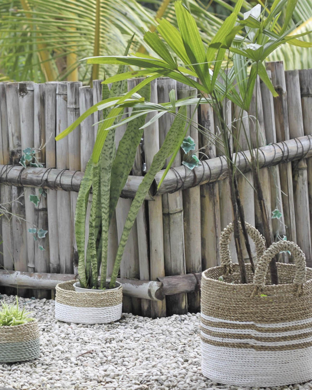 Our Denpasar basket has a unique design, its white and natural color make it look beautiful in any corner of your home: living room, dining room, bedroom, entrance, etc. Its neutral colors help it fit perfectly into different styles of decoration: boho, Nordic, Mediterranean, rustic, etc. They are ideal baskets!