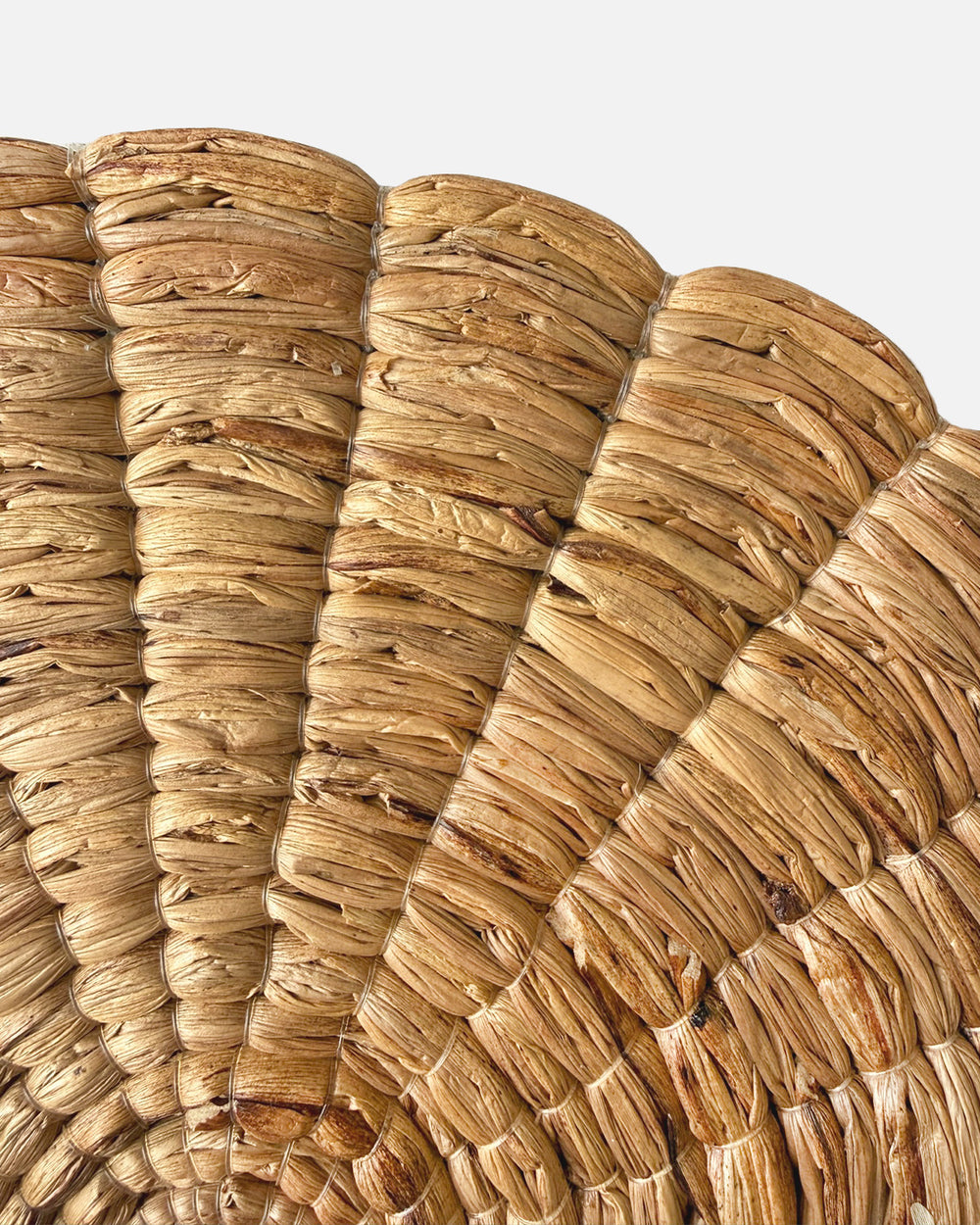 Los manteles individuales o bajoplatos junto a las bandejas decorativas están hechos a mano por artesanos en Bali con fibras naturales como el ratán o la rafia natural . Bandejas y manteles muy prácticos y decorativos al servir, al mismo tiempo, como mantel y decoración de mesa de una forma muy elegante que está muy de moda en decoración de interiores. Además, los manteles son muy resistentes y tienen el toque natural que tanto nos encanta.