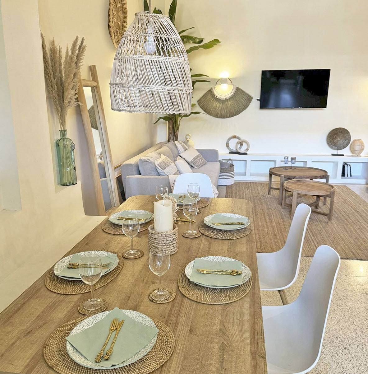 Esta colección se completa también con otras piezas muy funcionales y prácticas como son los taburetes altos, ideales para barras y cocinas abiertas, y los elementos decorativos. Los accesorios también ocupan gran importancia en el comedor, por ello, hemos incorporado bandejas decorativas y manteles individuales de fibras naturales, lámparas de comedor, decoración de pared. Sin duda, son estos detalles los que convierten una comida en un momento muy especial.