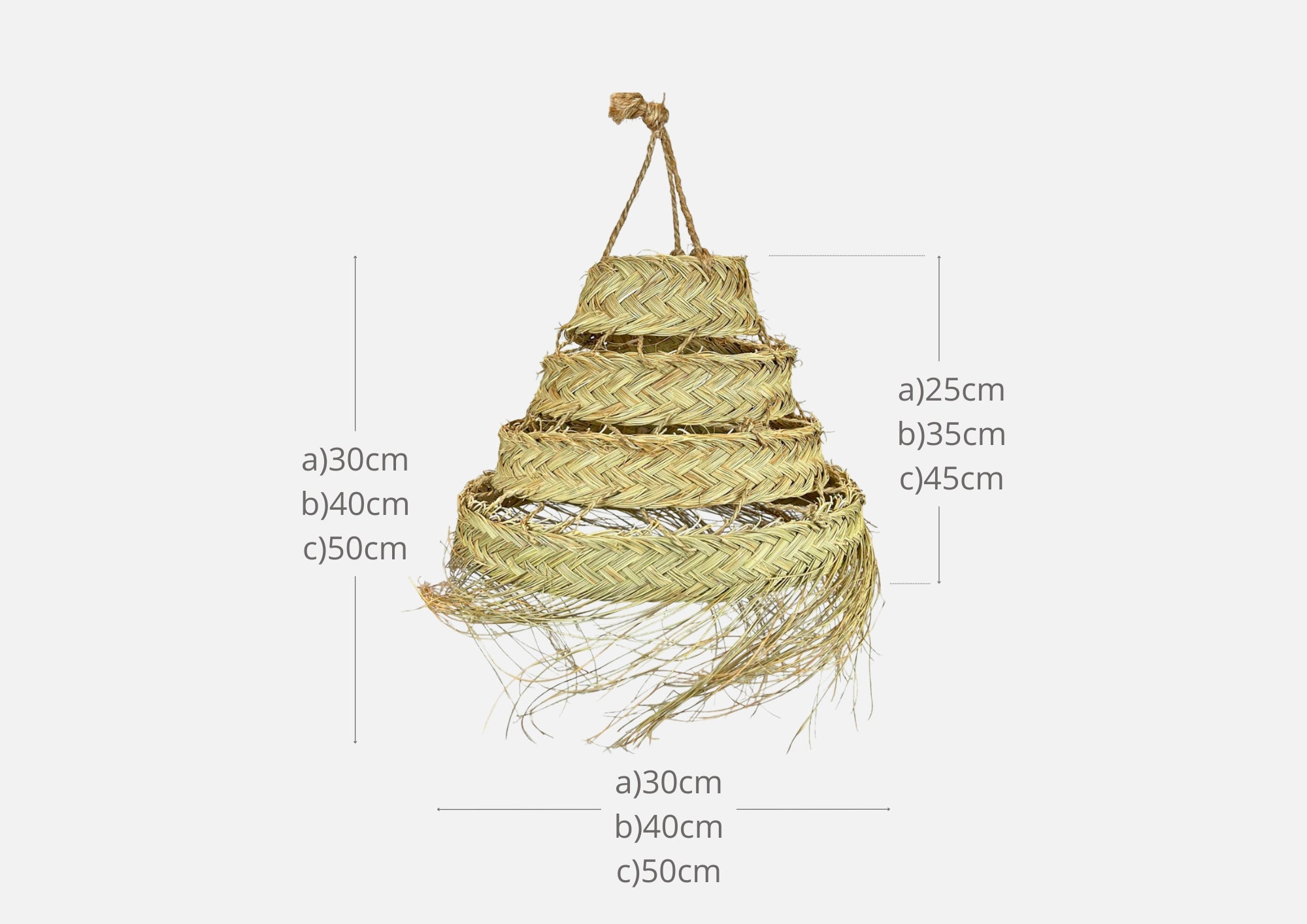 — Diamètre : 50 cm | Hauteur : 45 cm | Hauteur avec franges : 50 cm environ.