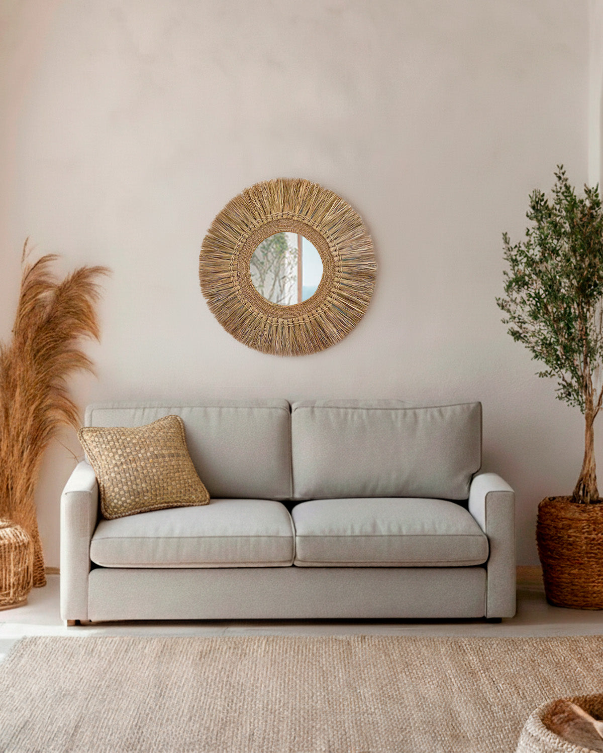 Le miroir Pura est tressé avec des algues marines avec beaucoup de soin et de détail.