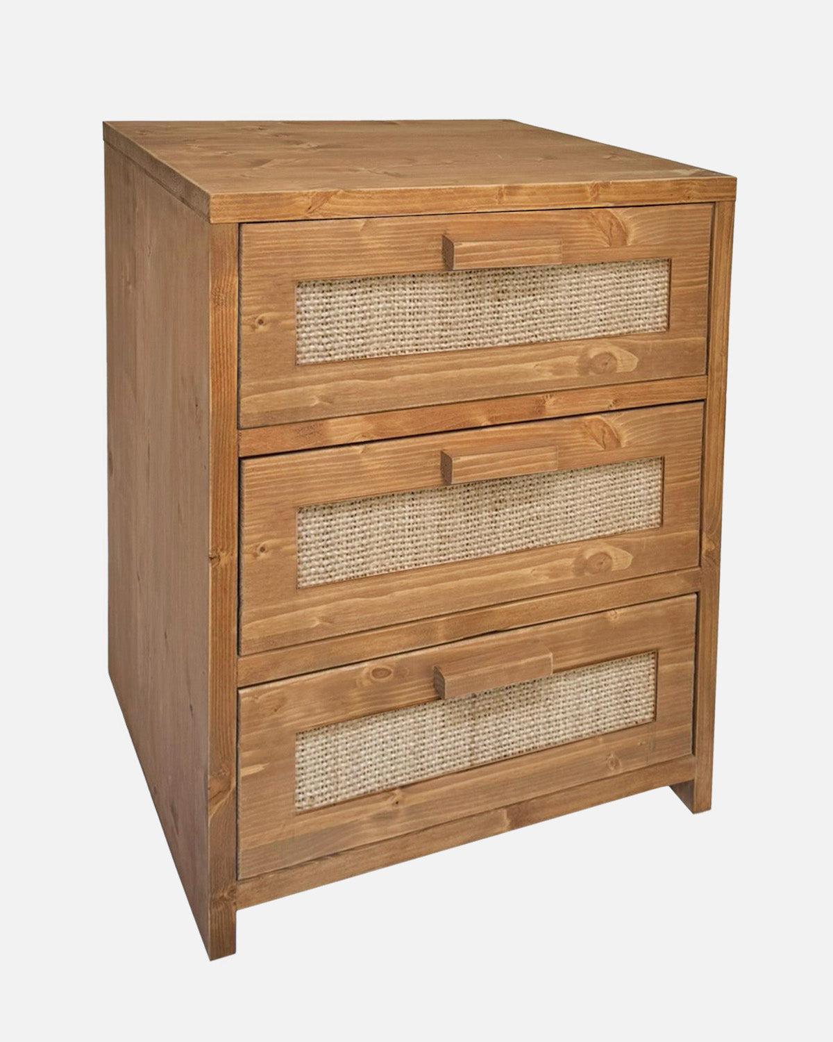 Fabriqué artisanalement en Espagne à partir de bois de sapin massif issu de forêts gérées durablement, ce meuble garantit une grande robustesse et une finition haut de gamme, ainsi que du raphia naturel. L'aspect naturel du bois met en valeur le grain et la texture uniques de chaque pièce, conférant authenticité et caractère à votre intérieur. Personnalisez-le en choisissant la teinte de bois qui s'harmonise le mieux avec vos goûts et votre décoration.