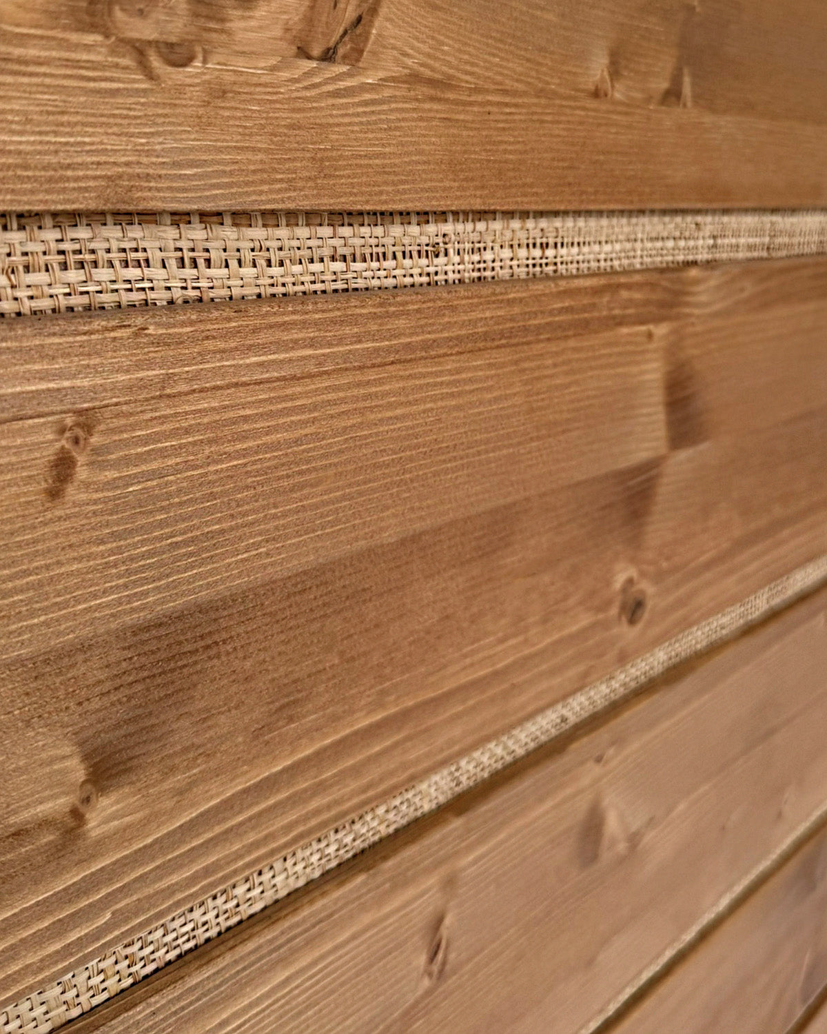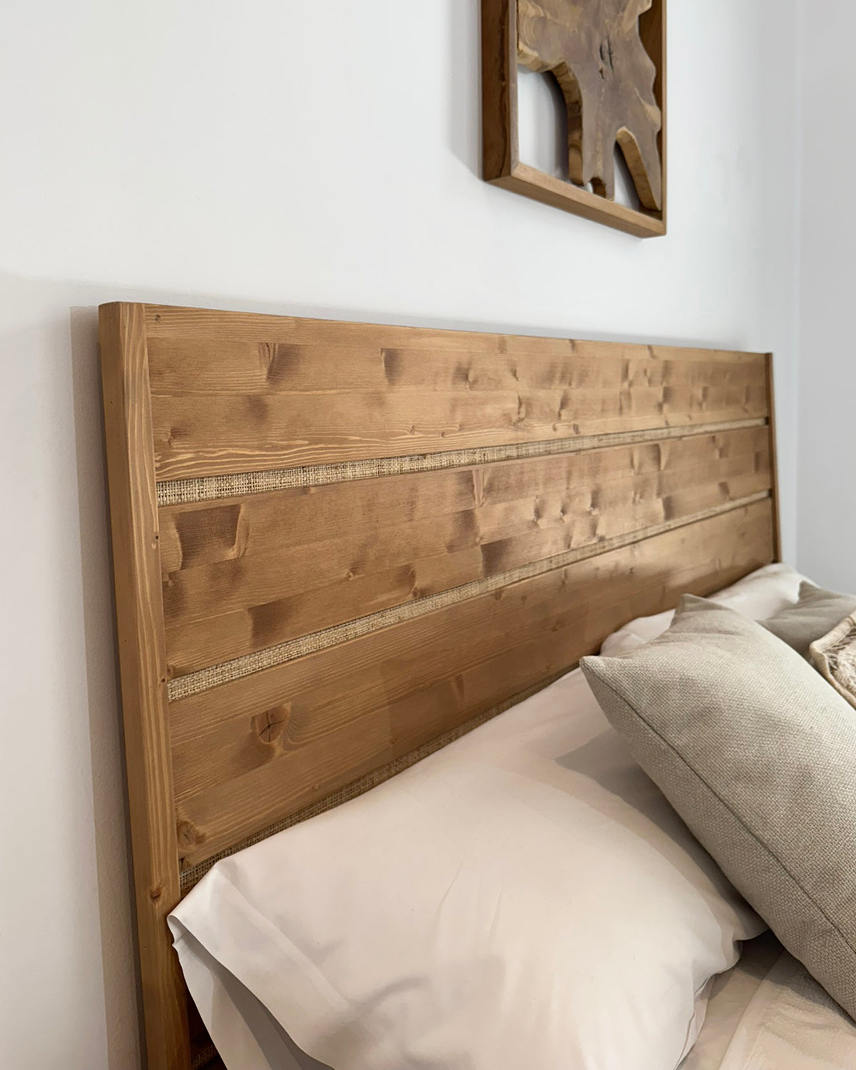 Aporta un toque elegante y sofisticado a tu dormitorio principal con nuestro cabecero de cama Aurea. Un cabecero de madera con líneas horizontales de rafia natural muy atractivo y decorativo. Estas líneas horizontales ayudan a ensanchar visualmente la pared del cabecero, creando una sensación de amplitud y armonía en la estancia. Además, a nivel decorativo, las texturas naturales de la rafia aportan profundidad, permitiendo así combinar esta pieza con una gran variedad de estilos decorativos (minimalista, rústico, nórdico...)